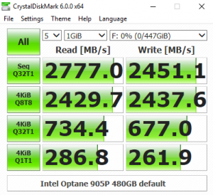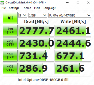 CrystalDiskMark is a useful benchmark to measure theoretical performance levels of hard drives and SSD’s. We are using v6.0.