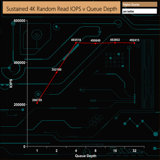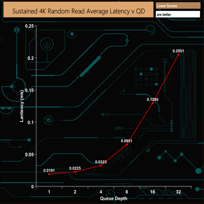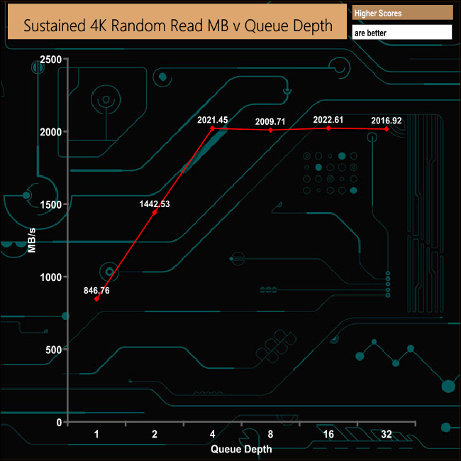 It's only at a fairly deep queue depth of 32 that the performance of the drive gives way to a standard NAND equipped drive.