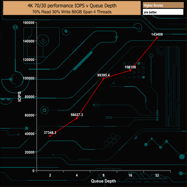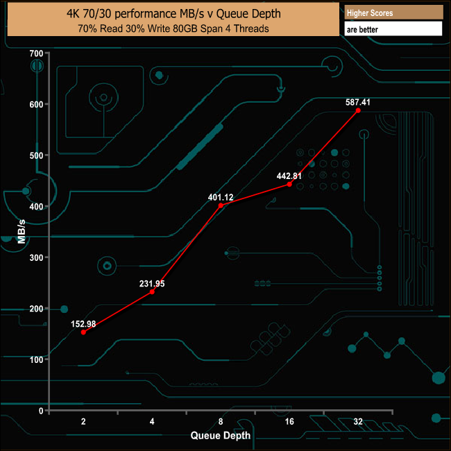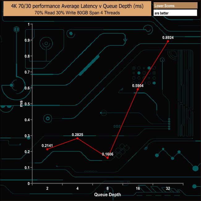 For a drive designed for the entry level market, the A1000 again performed very well in our 70/30 mixed read/write test.