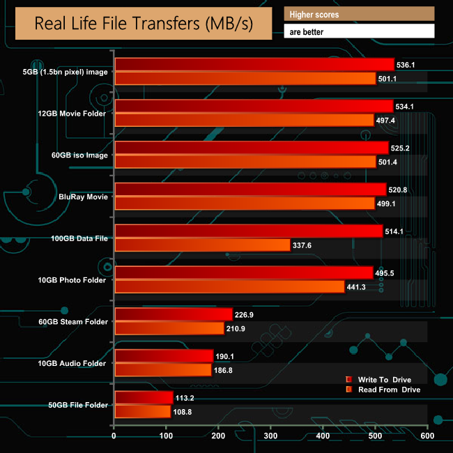 The only occasion where the drive struggled in our real life tests was when it was dealing with the small bity files contained in the 50GB file, 60GB Steam and 10GB audio folders. General performance other than that was impressive.