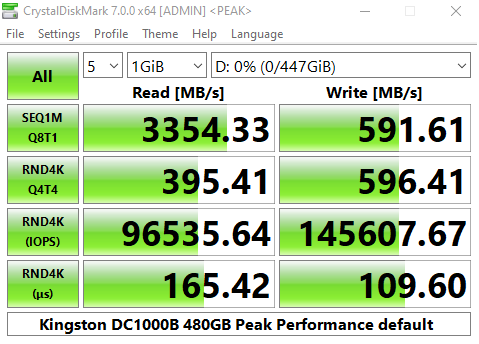 CrystalDiskMark is a useful benchmark to measure theoretical performance levels of hard drives and SSD’s. We are using v7.0.