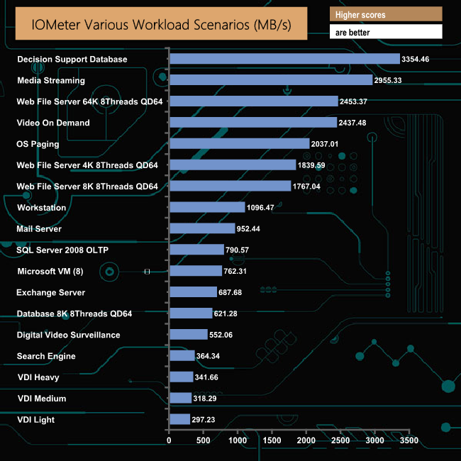 We also tested the drive in a number of workload scenarios that it might face in real life. The IOMeter settings we used to test with are listed below:-