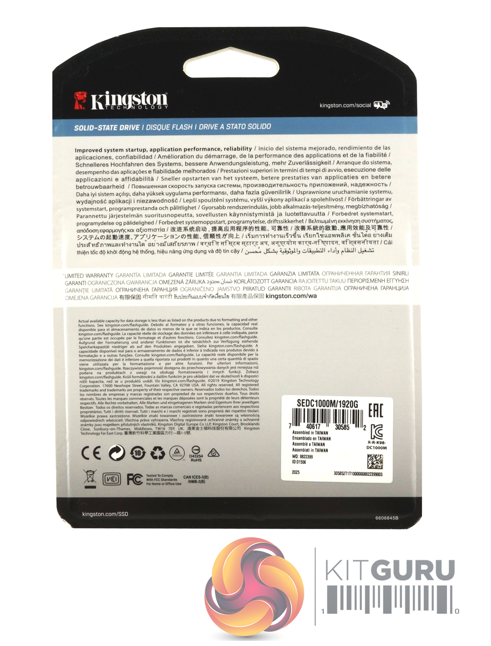 Unlike many other companies that deliver their data centre/enterprise drives in plain vanilla boxes, Kingston ships its drives in blister packs. The DC1000M's blister pack has the drive’s capacity clearly labelled on the front along with which market segment (s) the drive is aimed at, while the rear has multilingual marketing and warranty notes on it.