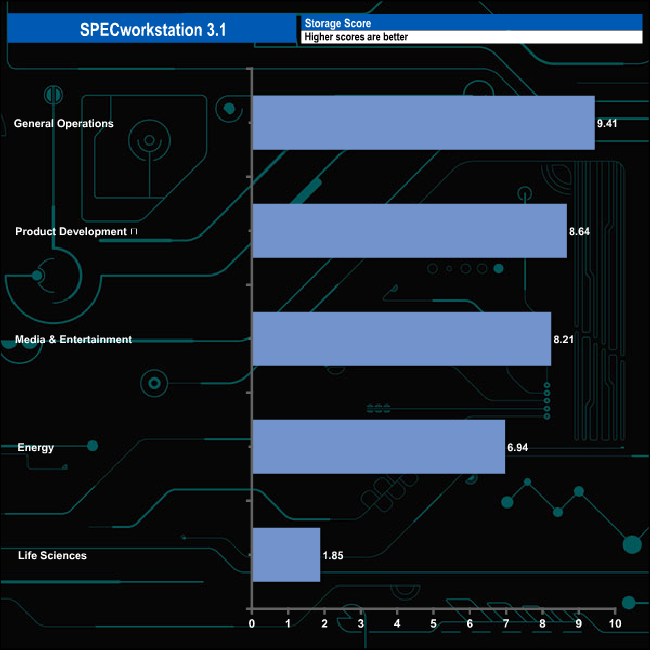 We used the WPCstorage section of the benchmark to test drives, which uses fifteen separate tests from the following categories: Media and Entertainment, Product Development, Life Sciences, Energy and General Operations.