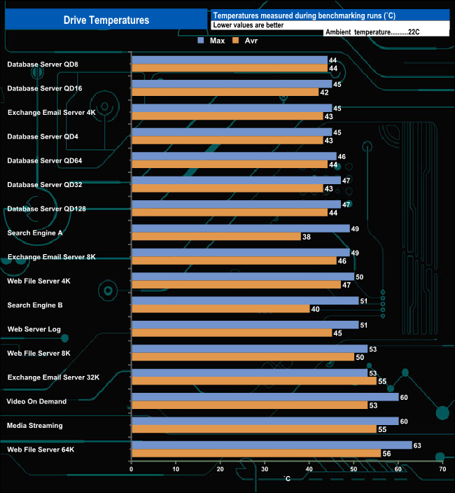 We took note of the drive’s temperature during some of our benchmarking runs.