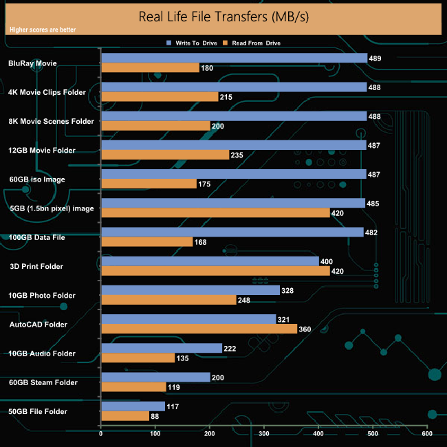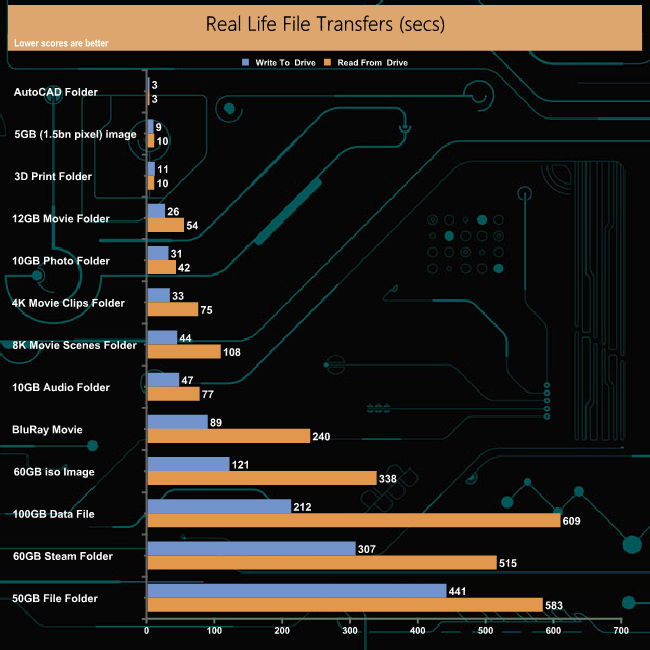 Our real-life file transfer tests posed little problem for the DC450R as it handled most of them very efficiently. As always it’s the 50GB file folder transfer that slows down the drive.