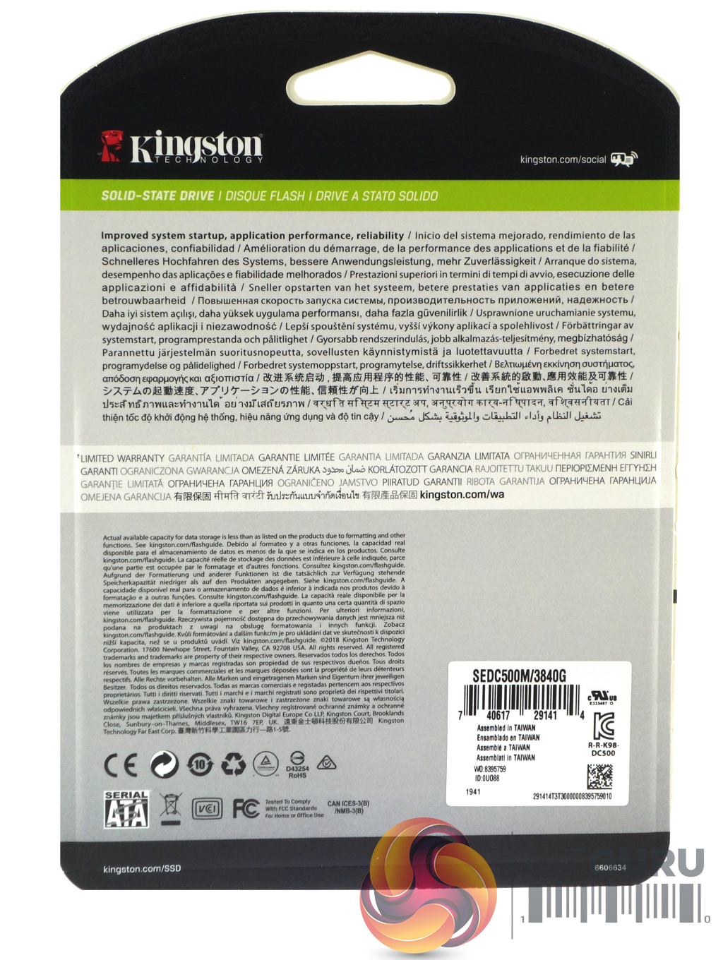 As with the DC500R, the DC500M ships in a blister pack with the drive's capacity clearly labelled on the front while the rear has multilingual marketing and warranty notes on it.