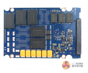Although the 3.84TB DC500M uses the same Kingston branded Intel 64-layer 3D TLC NAND memory as the 3.84TB DC500R, there is a difference in the NAND packages used and the layout of the components on the PCB. Where the DC500R uses 16 256GB packages, the DC500M uses 10 packages of 512GB to give a raw capacity of 5120GB.