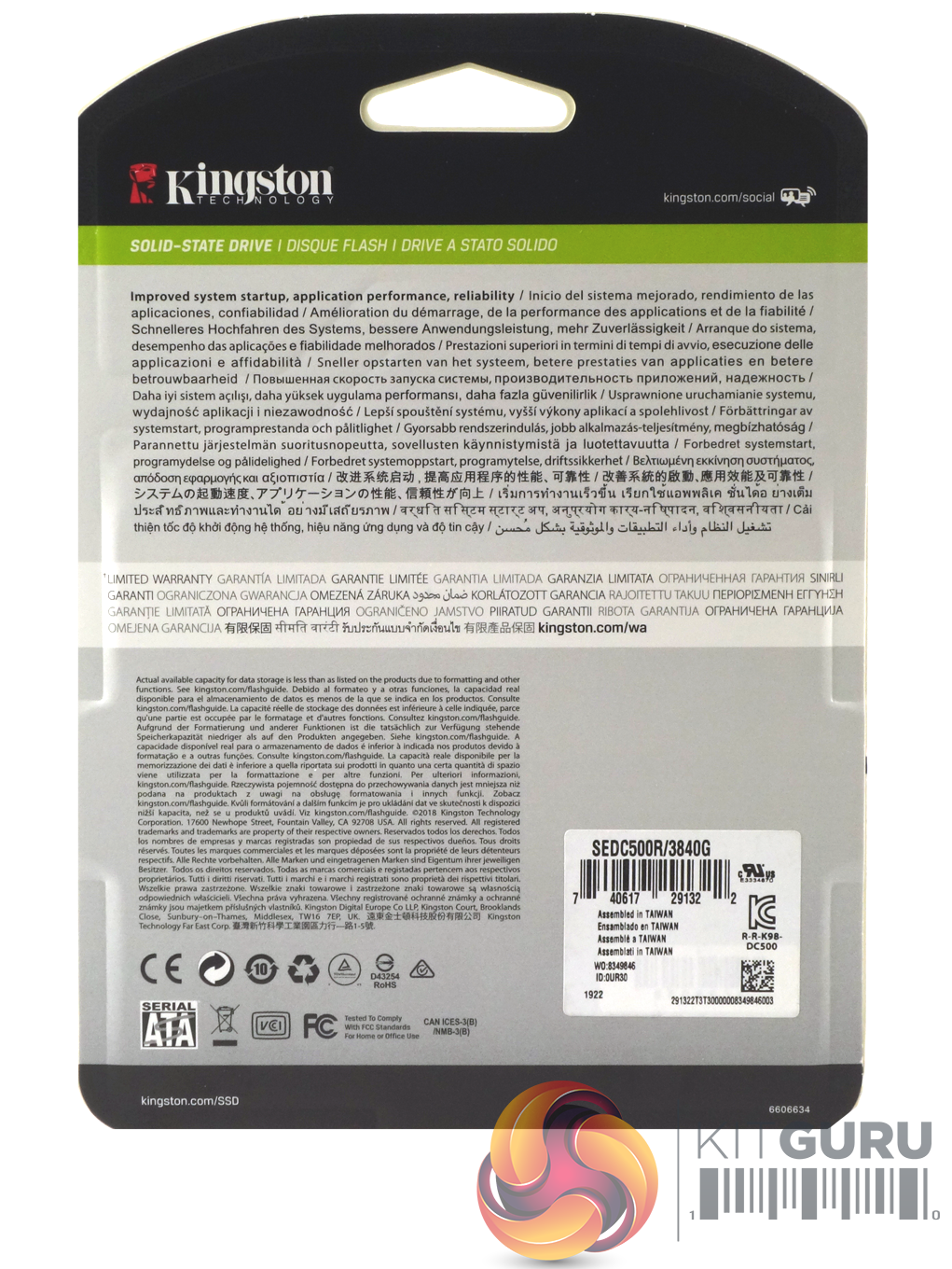 The DC500R ships in a blister pack with the drive's capacity clearly labelled on the front while the rear has multilingual marketing and warranty notes on it.