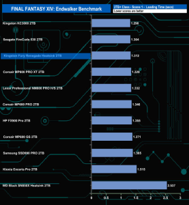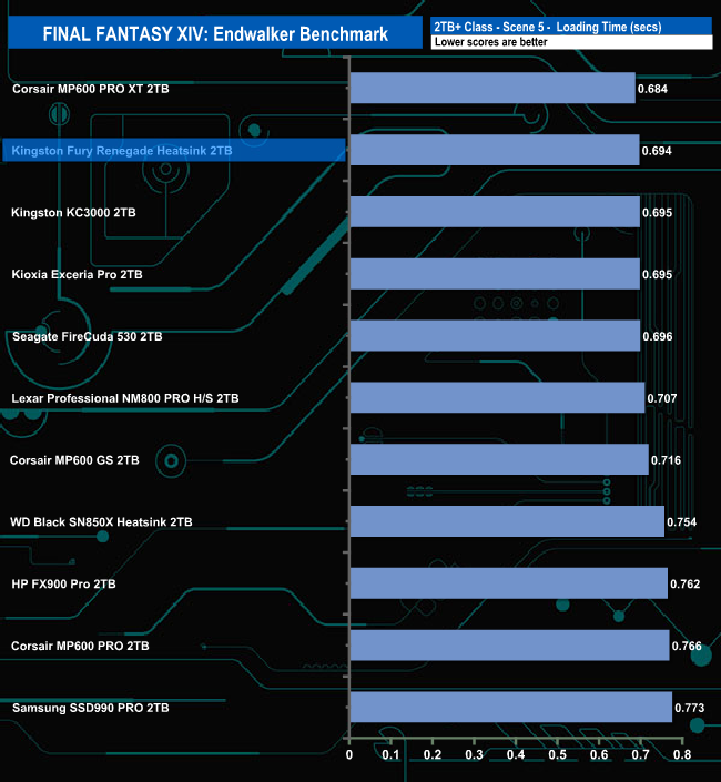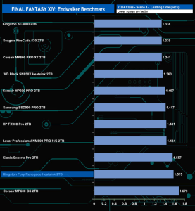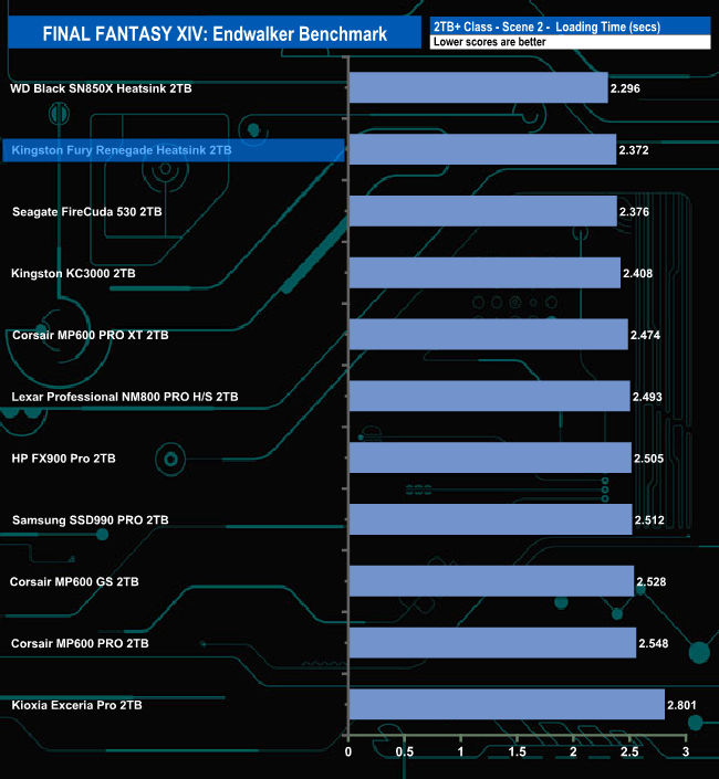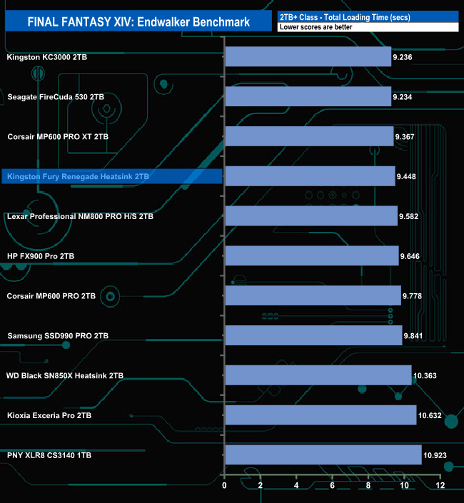 The Kingston Fury Renegade Heatsink total load time of 9.448 seconds is the fourth fastest we've seen to date for this test for a 2TB class drive.