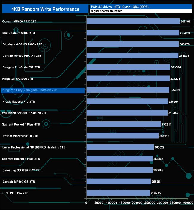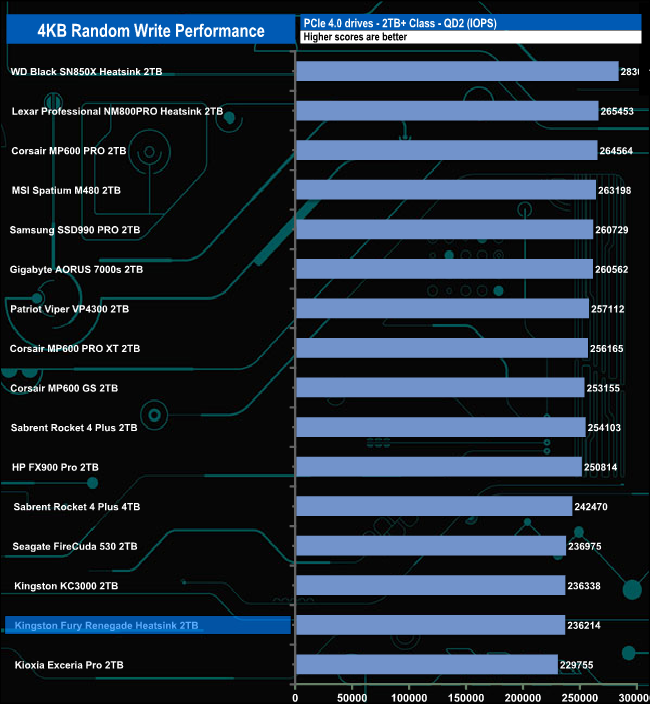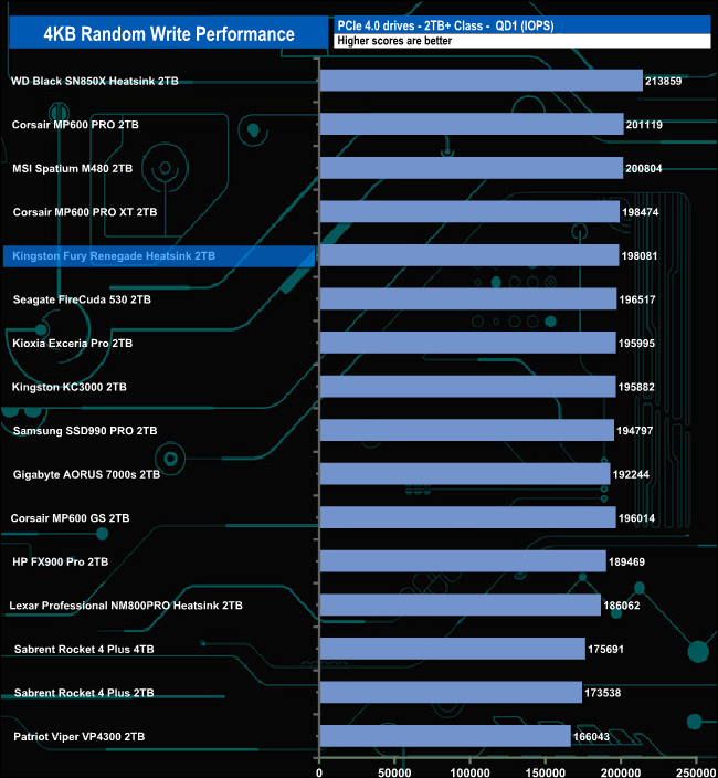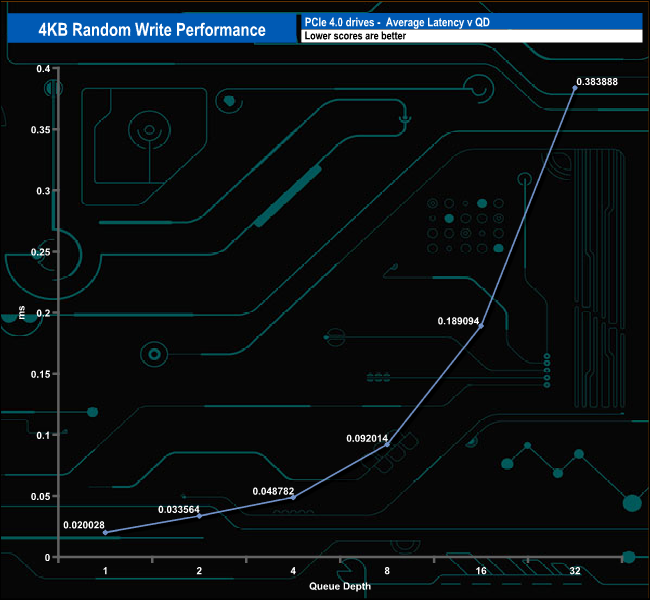 We used CrystalDiskMark 8‘s custom settings to test the 4K random write performance of the drive through a range of queue depths. The setup for the tests is listed below.