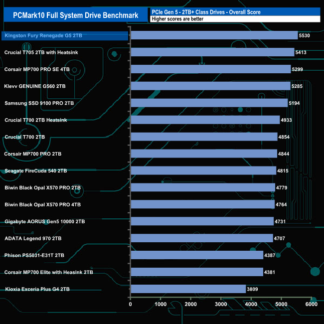 The PCMark 10 Full System Drive Benchmark uses a wide-ranging set of real-world traces from popular applications and common tasks to fully test the performance of the fastest modern drives. The benchmark is designed to measure performance of fast system drives using the SATA bus at the low end and devices connected via PCI Express at the high end.