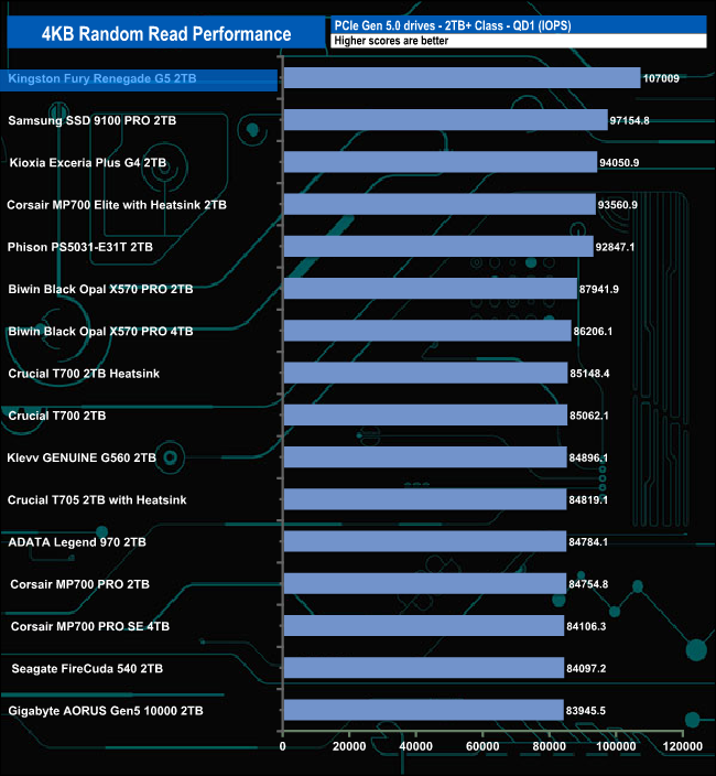 We used CrystalDiskMark 8‘s custom settings to test the 4K random read performance of the drive through a range of queue depths. The setup for the tests is listed below.