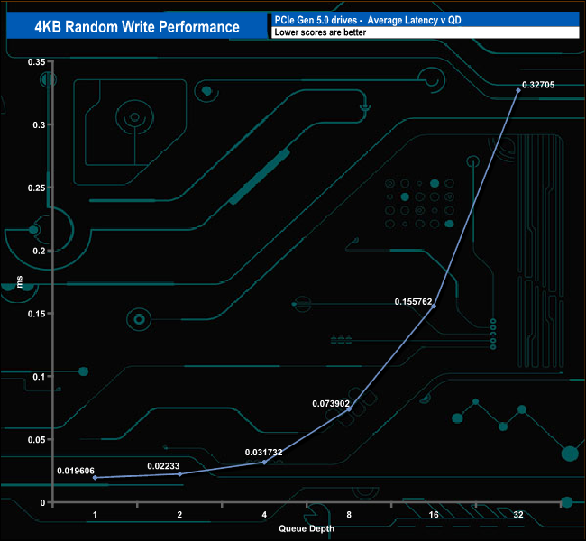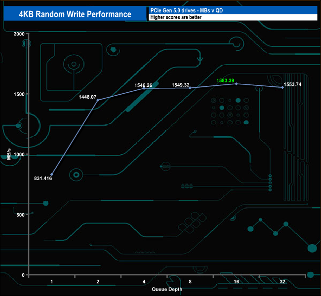 We used CrystalDiskMark 8‘s custom settings to test the 4K random write performance of the drive through a range of queue depths. The setup for the tests is listed below.