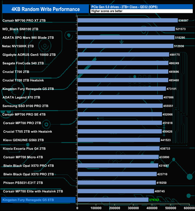 The 8TB version of the Fury Renegade G5 doesn't get out of the bottom half of the results table during any of the test runs.