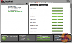 The drive is supported by Kingston's SSD Manager utility. It displays drive health, status and how the disk capacity is being used and it also enables the updating of firmware.