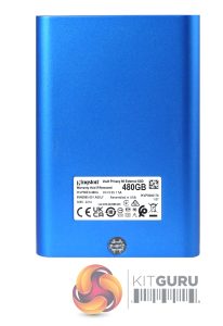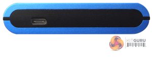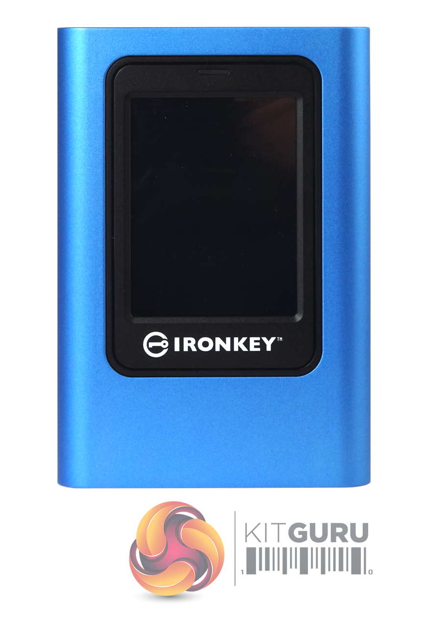 The blue finished drive enclosure is constructed from a mix of plastic and zinc. The inclusion of zinc is handy as it helps dissipate any heat generated by the drive. The front of the drive is dominated by the coloured touchscreen which measures 58 x 44mm. The screen isn't flush mounted but sits in a recess. If you have large fingers then using the screen is a little awkward, to say the least. It's much easier to use a stylus but for some reason, Kingston didn't think to bundle one with the drive which is a bit frustrating.