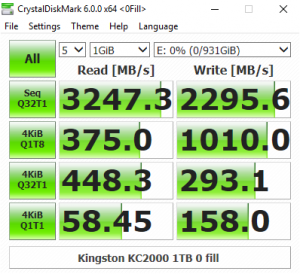CrystalDiskMark is a useful benchmark to measure theoretical performance levels of hard drives and SSD’s. We are using v6.0.