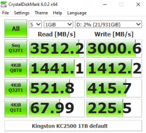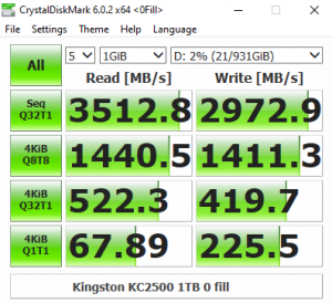 CrystalDiskMark is a useful benchmark to measure theoretical performance levels of hard drives and SSD’s. We are using v6.0 and v7.