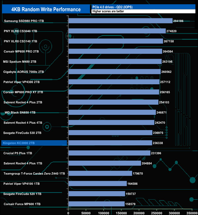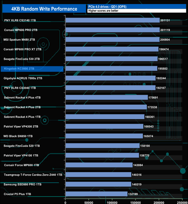 We used CrystalDiskMark 8‘s custom settings to test the 4K random write performance of the drive through a range of queue depths. The setup for the tests is listed below.