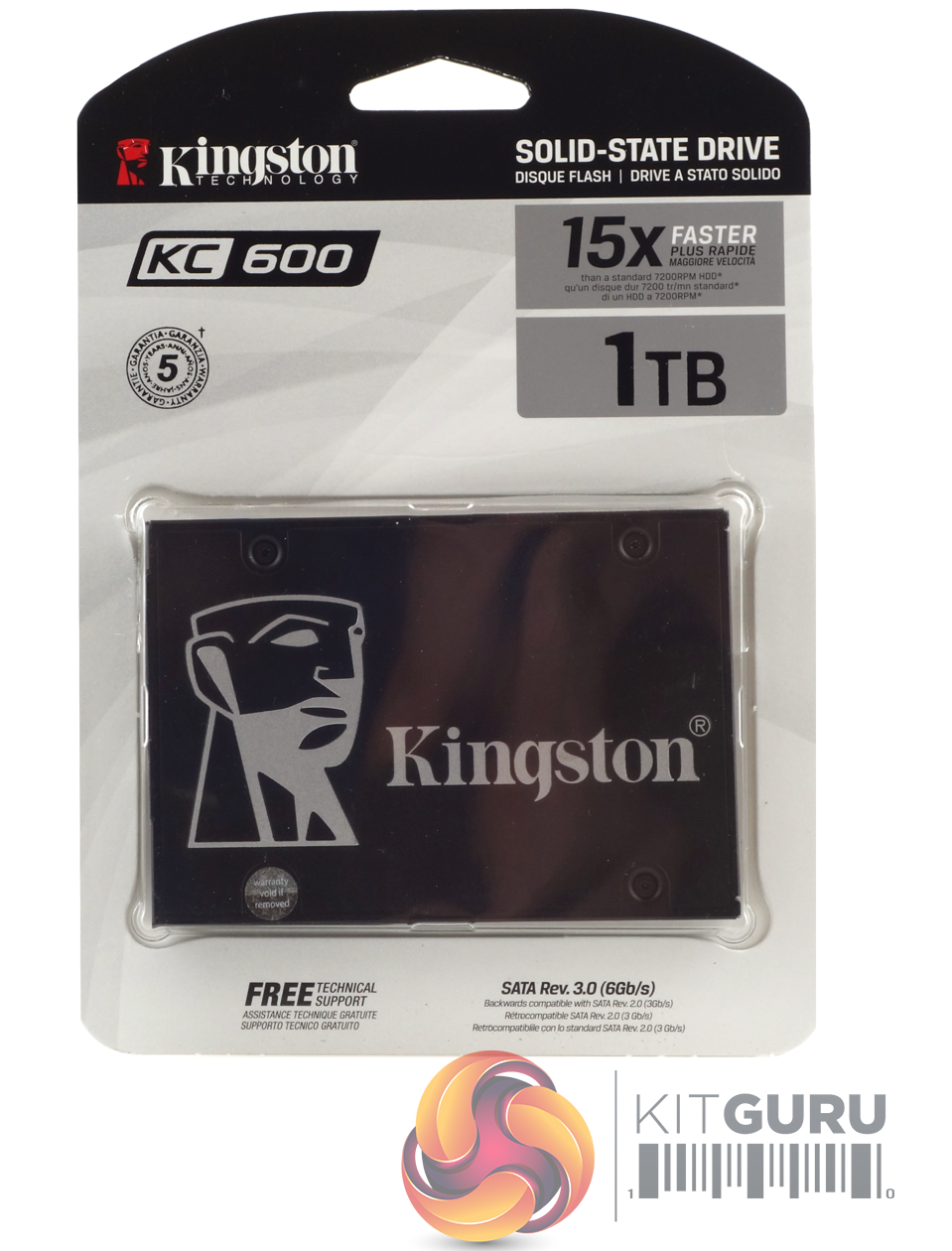 The KC600 is available as a standalone drive or as part of desktop/notebook upgrade kit. Our 1TB drive was one of the standalone versions which comes in a blister pack. Above the drive is the capacity label and above that is a box explaining how much faster than an HDD drive the KC600 is.