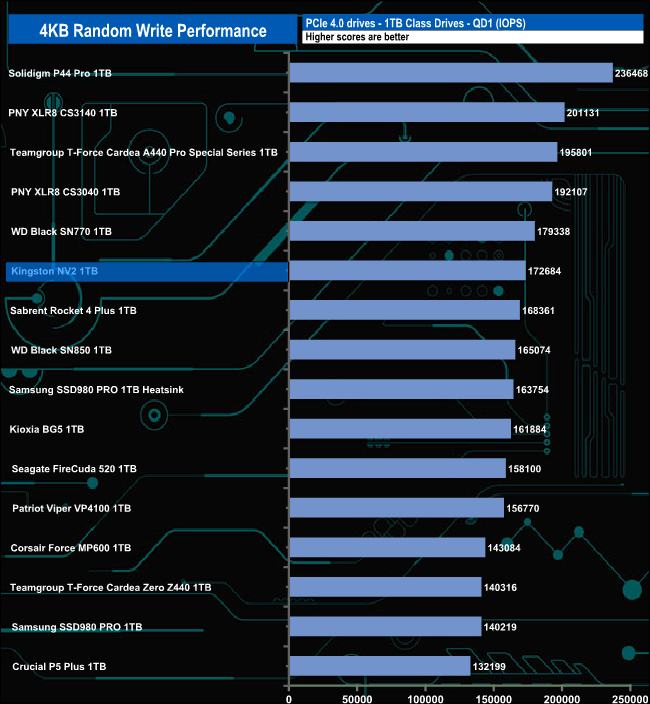 We used CrystalDiskMark 8‘s custom settings to test the 4K random write performance of the drive through a range of queue depths. The setup for the tests is listed below.