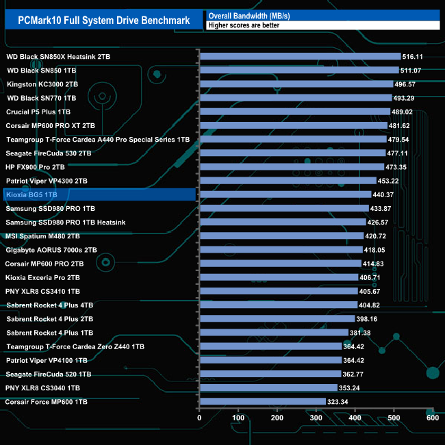 The overall bandwidth figure of 440.37MB/s sees the drive positioned in the mid-half of the table.