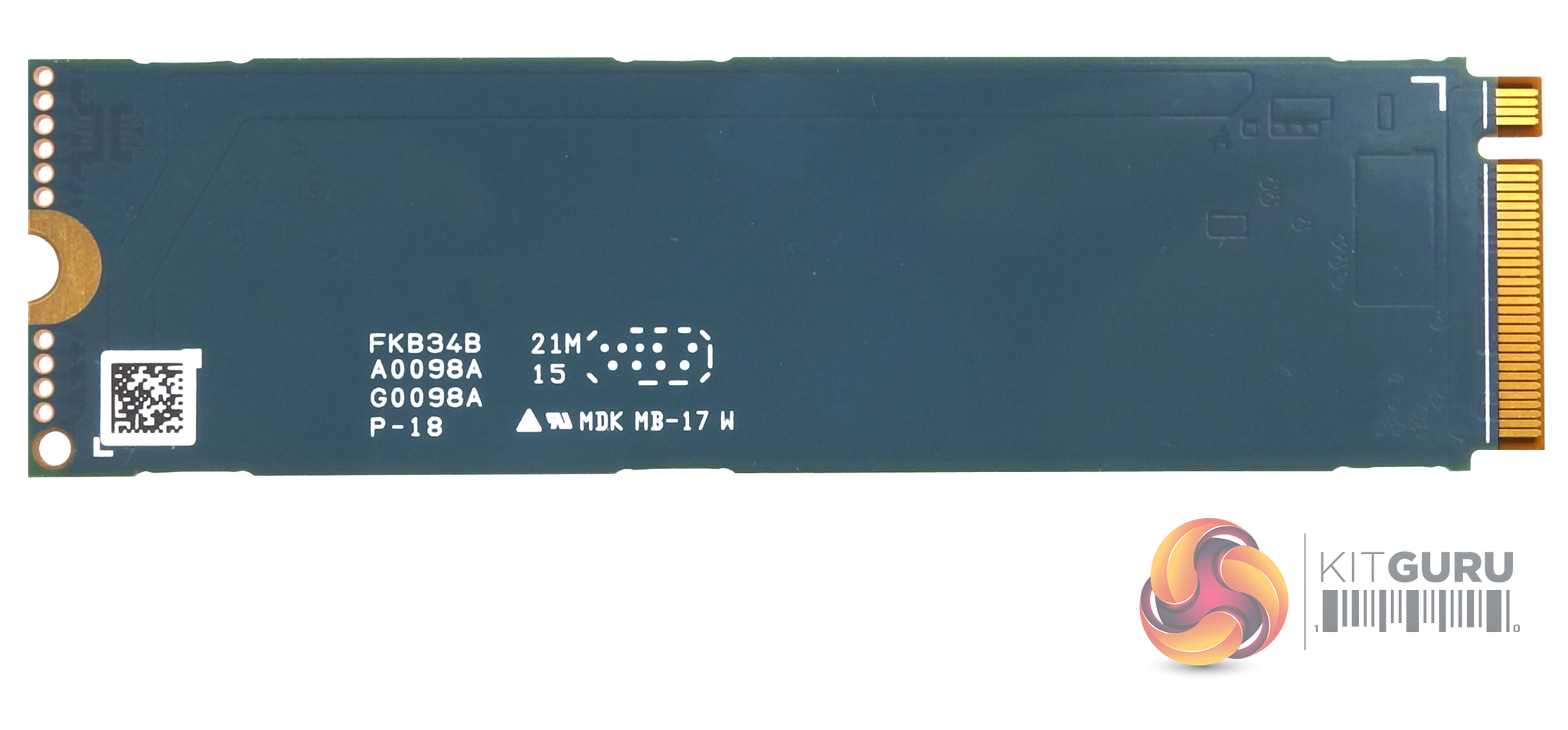 Under the product sticker is a single 1TB package of Kioxia's BiCS5 112-layer TLC 3D NAND (coded TH58LKT3X25BAEG). There's a lot of empty real estate between the NAND package and the tiny Kioxia controller, labelled TC58NCOL1BGSB at the other end of the board.