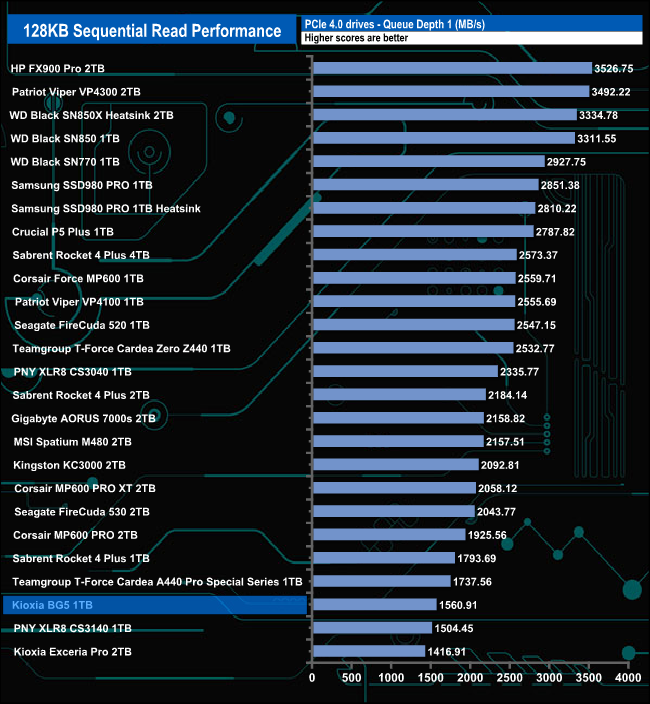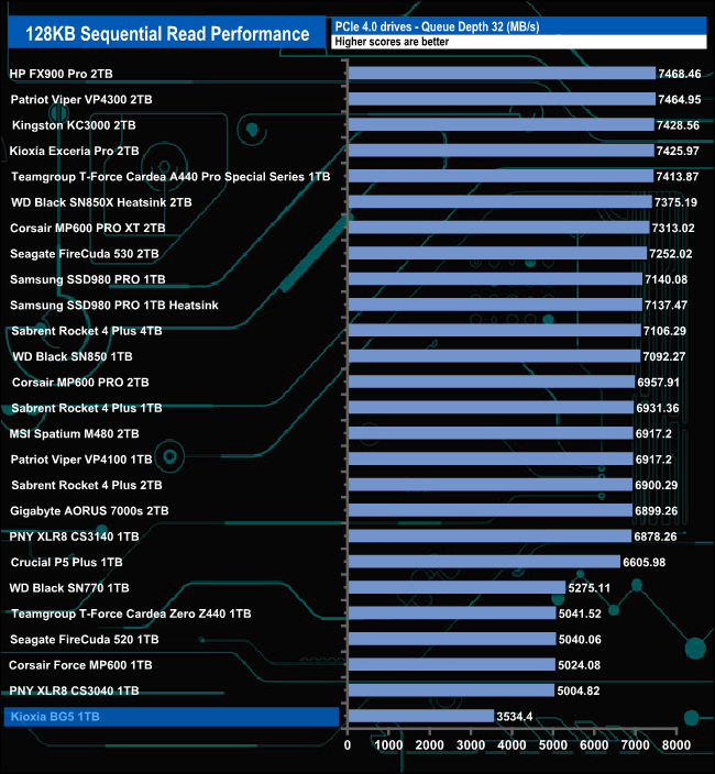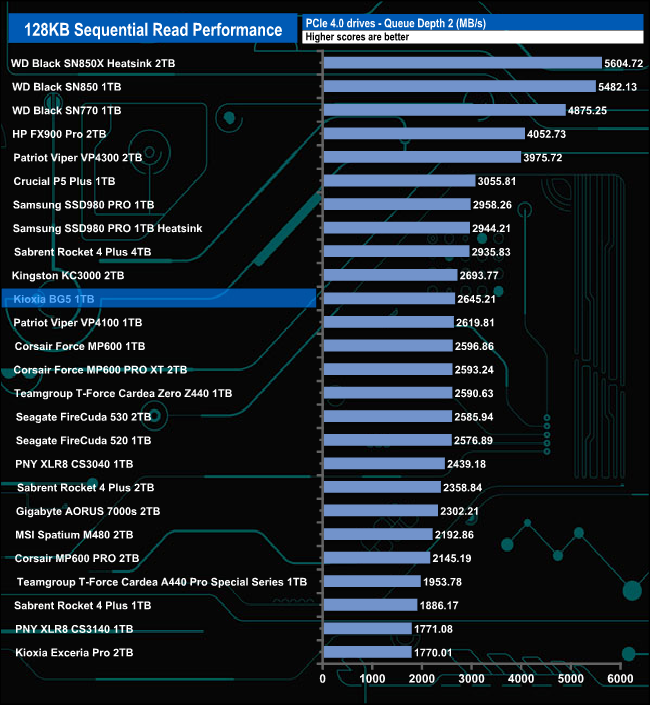 The BG5 performs best in relation to other drives around it at QD's 2 and 4 where it sits mid-table. At QD1 it's near the bottom of the table and at QD32, it sits in last place.