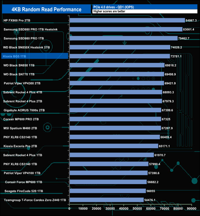 We used CrystalDiskMark 8‘s custom settings to test the 4K random read performance of the drive through a range of queue depths. The setup for the tests is listed below.