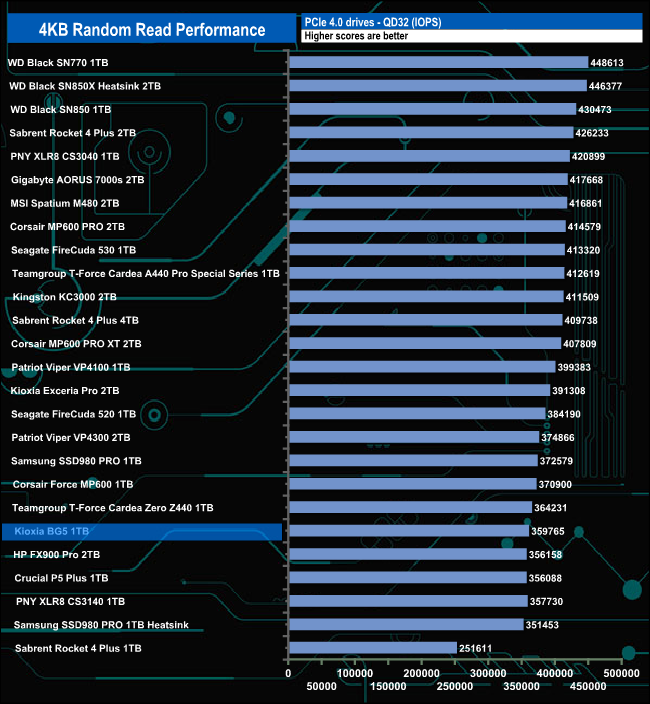 At QD 1 and 2, the BG5 sits in the top five of the drives we have tested. As the queue depth deepens the drive starts to drop down the table. By QD32 it's in the bottom half of our results chart.