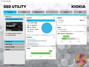 The SSD Utility management software gives an overview of system status, capacity, interface, health and updates. It even has a benchmarking tool. The utility also provides support for firmware upgrades and over-provisioning.