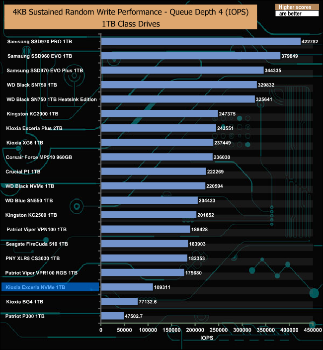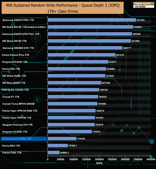 Kioxia's Exceria NVMe struggles in relation to most of the other drives in our result charts.