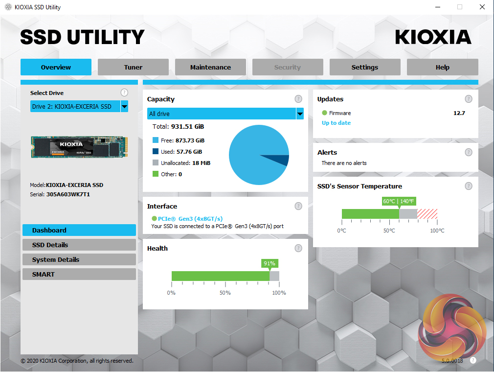 The SSD Utility has been given a refresh to go along with the re-branding. It lets you check on the drive’s capacity, how it’s being used and how much life is left in the SSD. There’s a tuning section with an integrated benchmark so you can see how the drive is running. It also allows for easy implementation of firmware updates and there is a comprehensive help section as well.