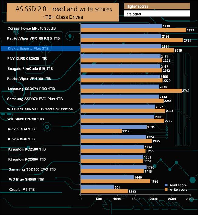 As you might expect for a drive aimed at the enthusiast end of the market, the Kioxia Exceria Plus shows strong performance in the AS SSD benchmark.