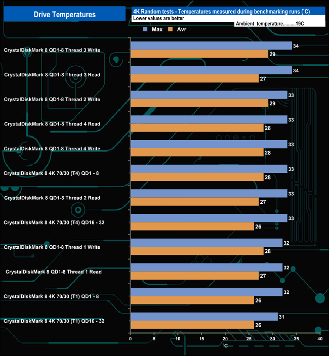 We took note of the drive’s temperature during some of our benchmarking runs.