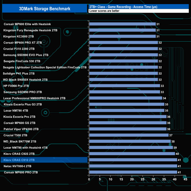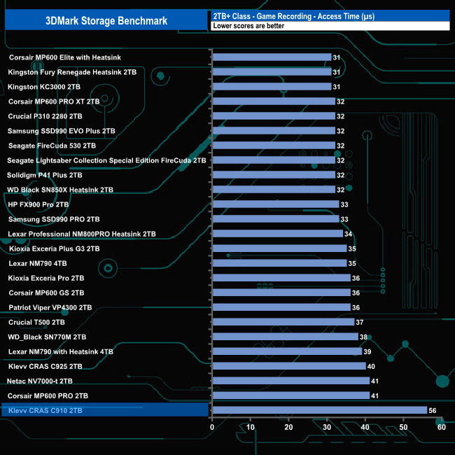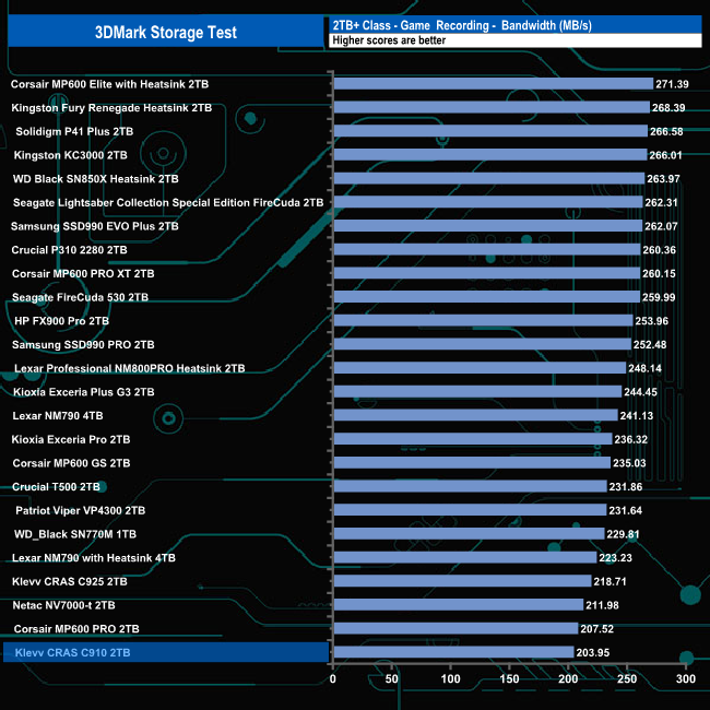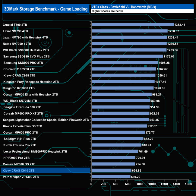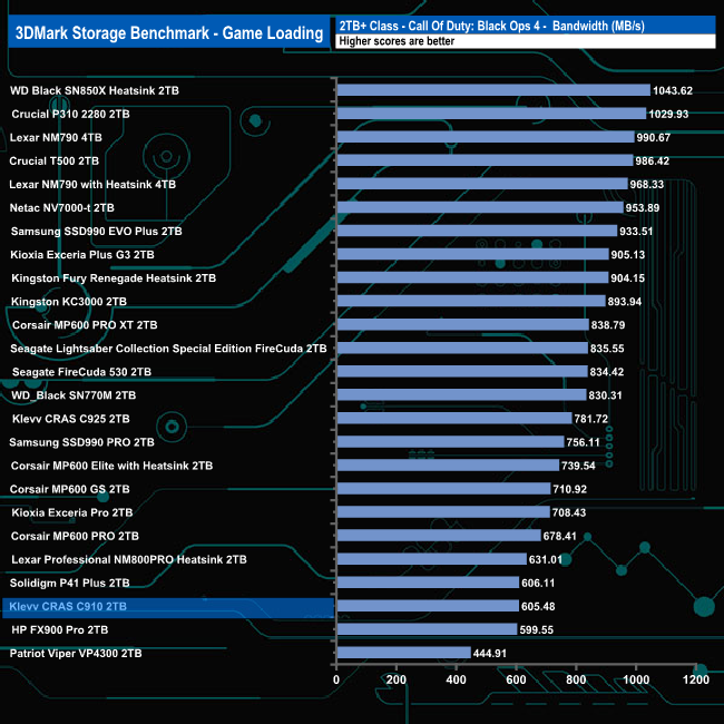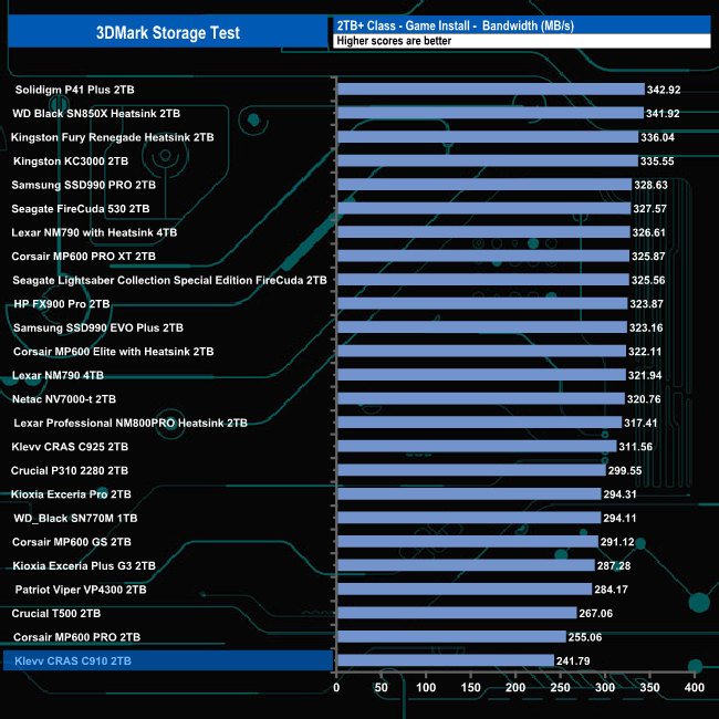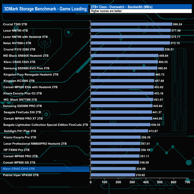 In the game moving test the Klevv CRAS C910 sits in third from last sport with a bandwidth figure of 2,476.7MB/s.