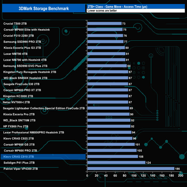 In the Game Move test, only the Solidigm P41 Plus and the Patriot Viper VP4300 are slower than the Klevv drive.