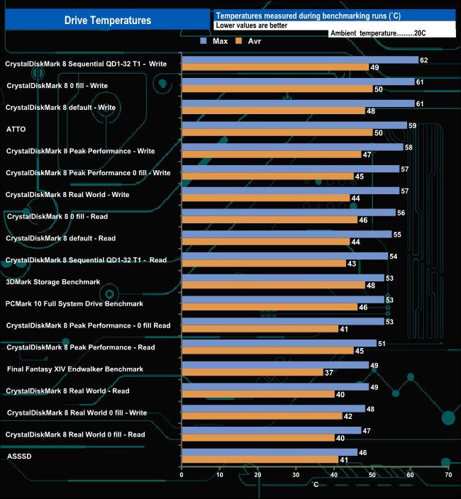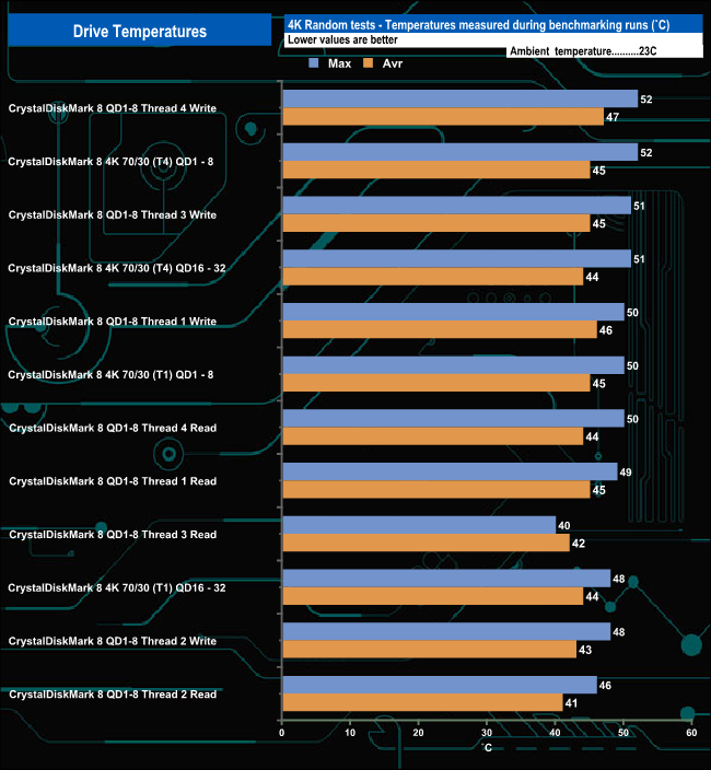 We took note of the drive’s temperature during some of our benchmarking runs.