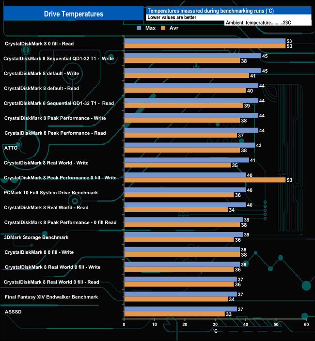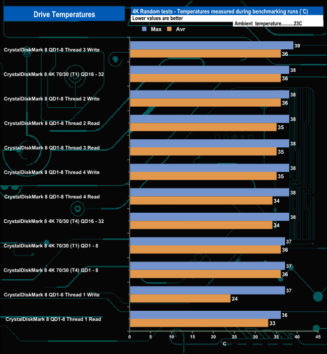 We took note of the drive’s temperature during some of our benchmarking runs.