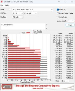 We are using version 4.1 for our NVMe disk tests with a set length of 256mb and testing both the read and write performance. We will also start using ATTO 5 for testing drives. ATTO 5 has new features, enhancements and changes which allow it to benchmark modern SSDs more thoroughly than previous versions.