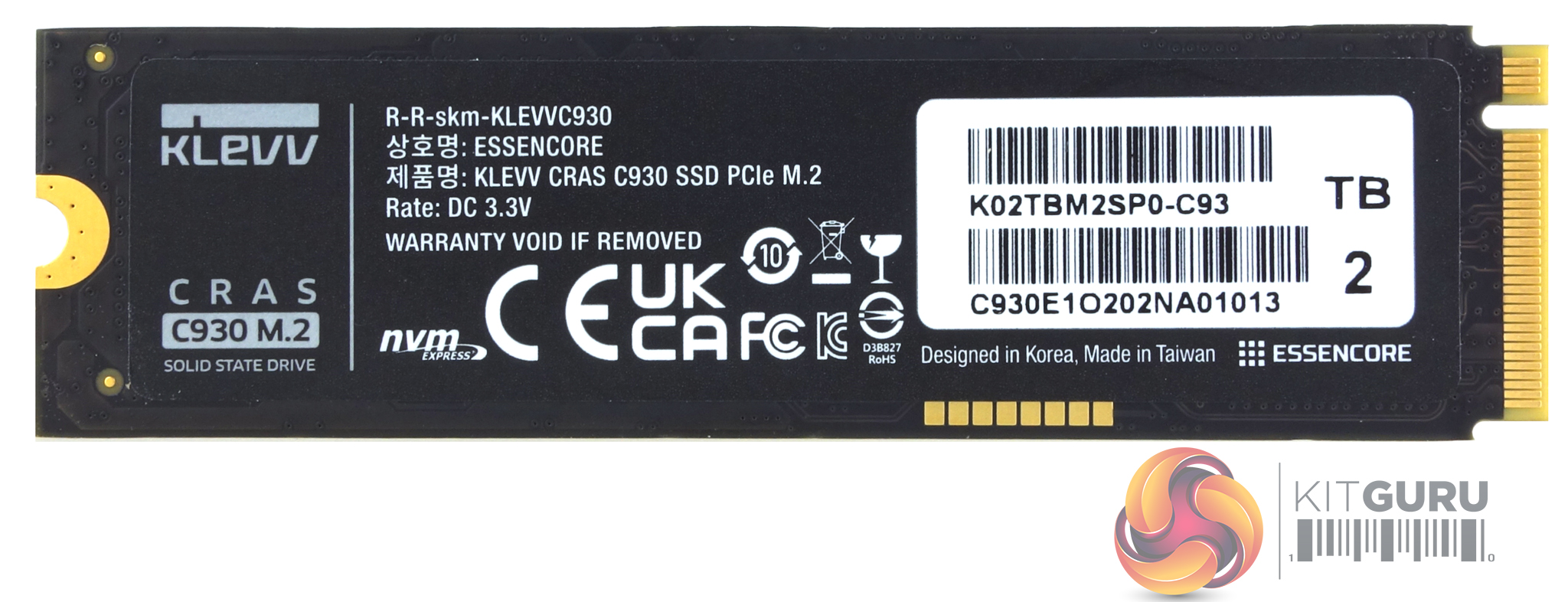 The 2TB CRAS C930 is built on a single-sided M.2 2280 format, meaning that all the major components sit on one side of the PCB. Along with the InnoGrit IG5236 controller, there are two 1TB Essencore-branded 176-layer 3D TLC NAND packages and a 2GB DDR4-4266 DRAM cache IC.