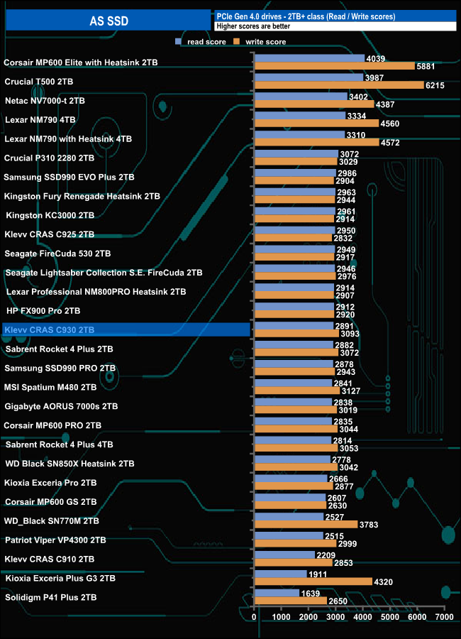 The 2TB CRAS C930 read score of 2891 sees the drive slot into a mid-table position.