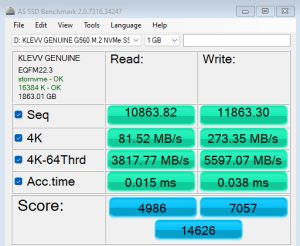 AS SSD is a great free tool designed just for benching Solid State Drives. It performs an array of sequential read-and-write tests, as well as random read-and-write tests with sequential access times over a portion of the drive. It uses incompressible data samples which many drives struggle with, so results can be viewed as the worst-case scenarios.
