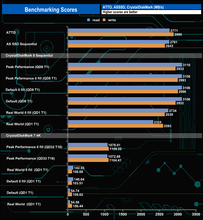 AS SSD is a great free tool designed just for benchmarking Solid State Drives. It performs an array of sequential read and write tests, as well as random read and write tests with sequential access times over a portion of the drive. AS SSD includes a sub suite of benchmarks with various file pattern algorithms, but this is difficult in trying to judge accurate performance figures.