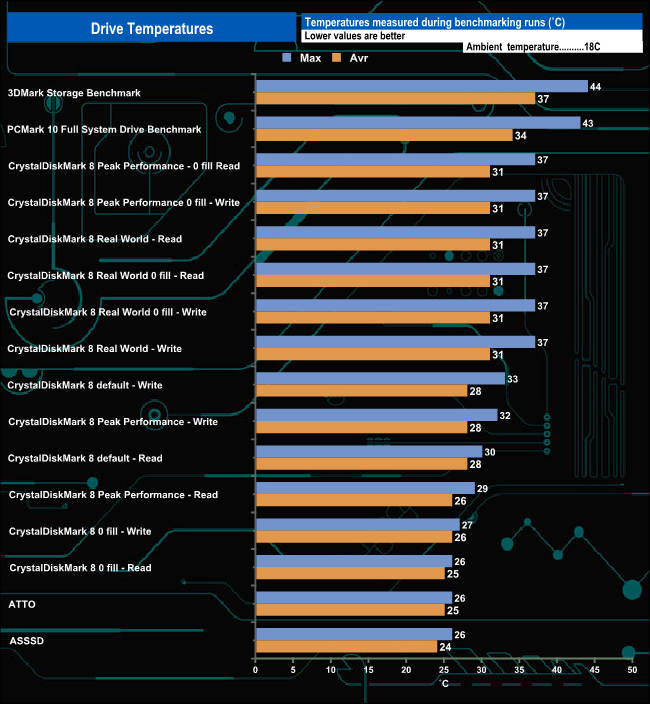 We took note of the drive’s temperature during some of our benchmarking runs. During our benchmarking, the hottest the drive got was 44 °C during the 3DMark Storage Benchmark run. The Rugged SSD4 averaged 33.6° C for our benchmarking runs.