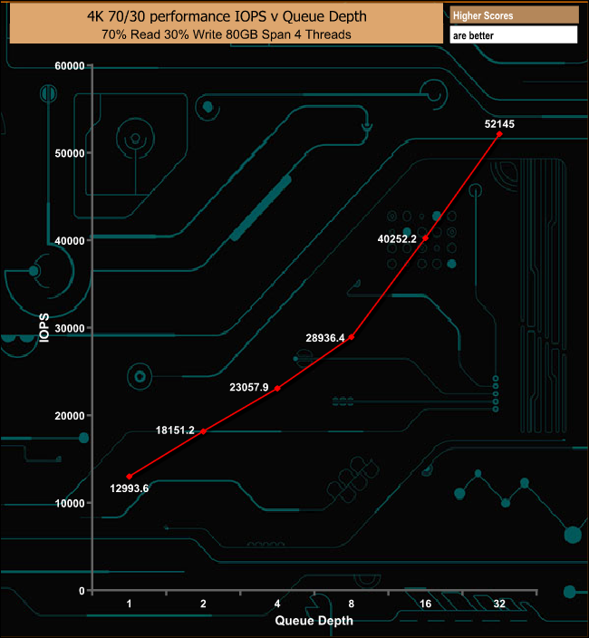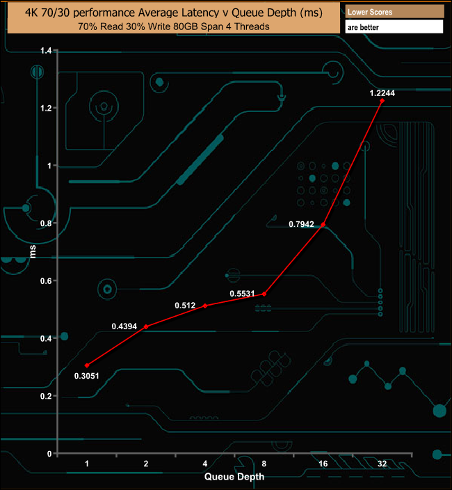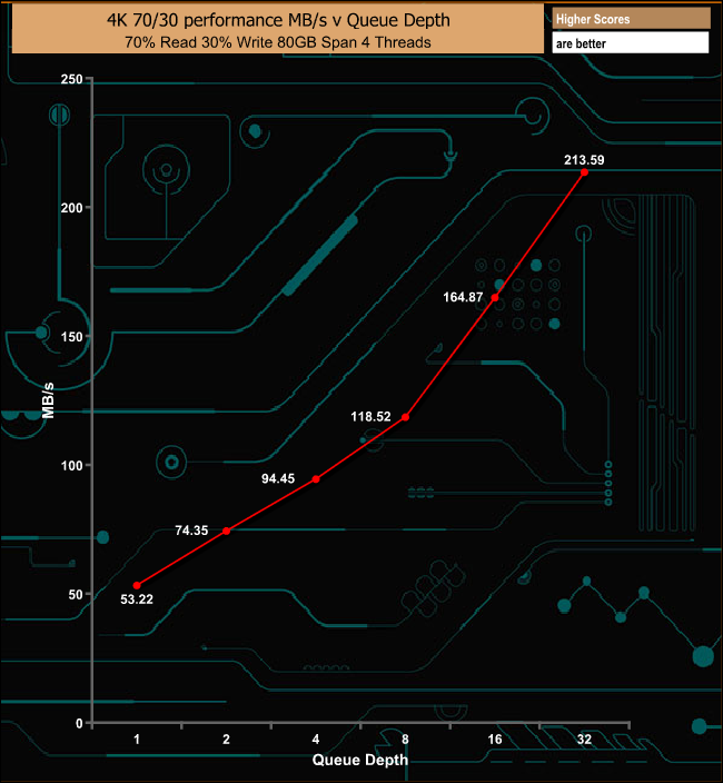 In the mixed 70/30 read/write tests the drive was consistent if not particularly fast.