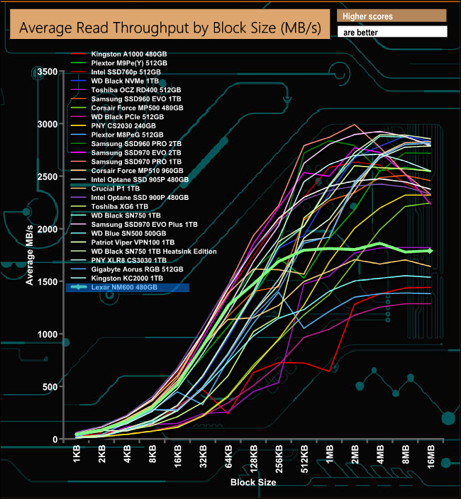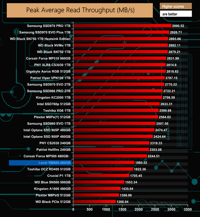 That peak read figure of 1,860.52MB/s puts the NM600 into the bottom segment of our results chart.