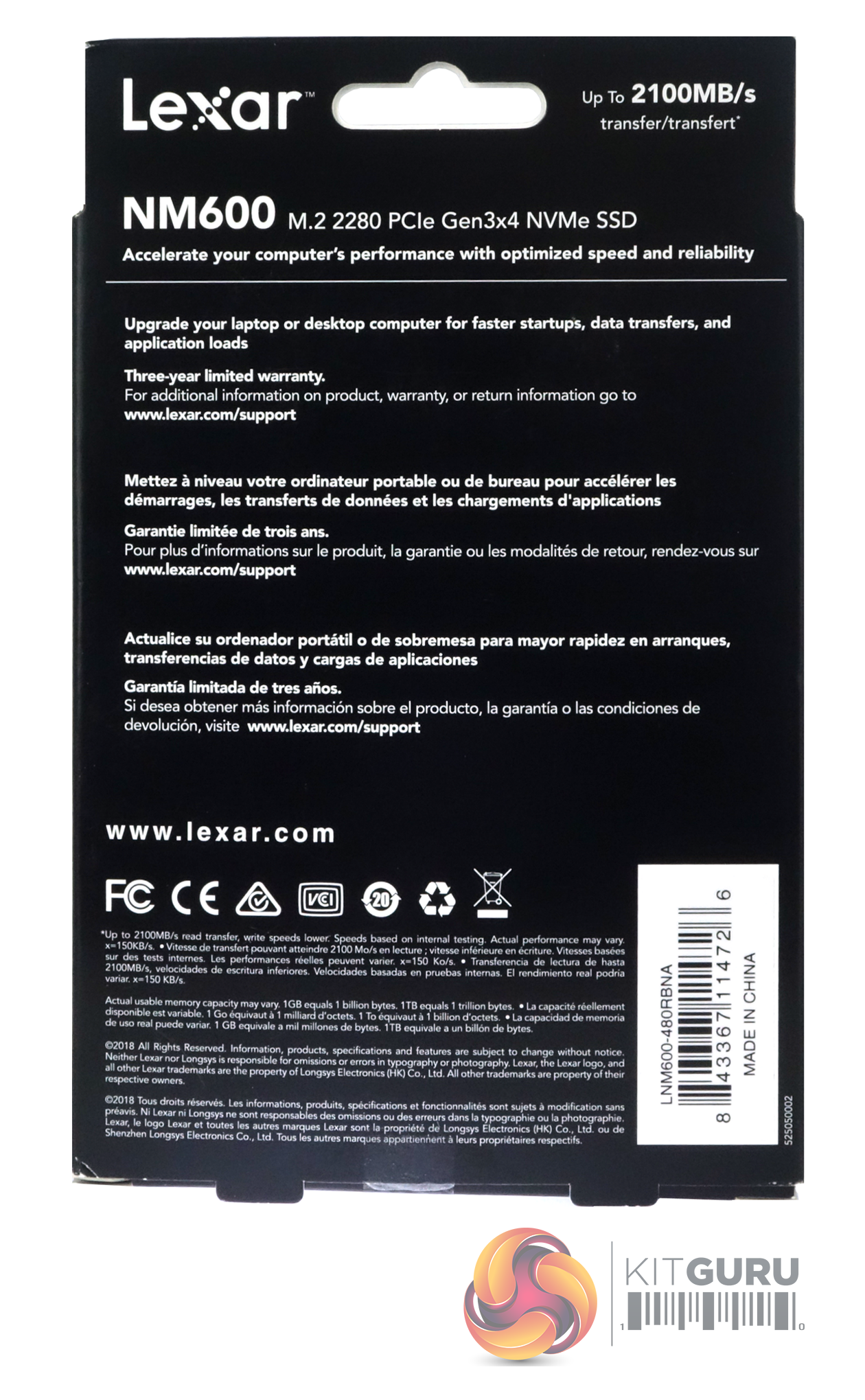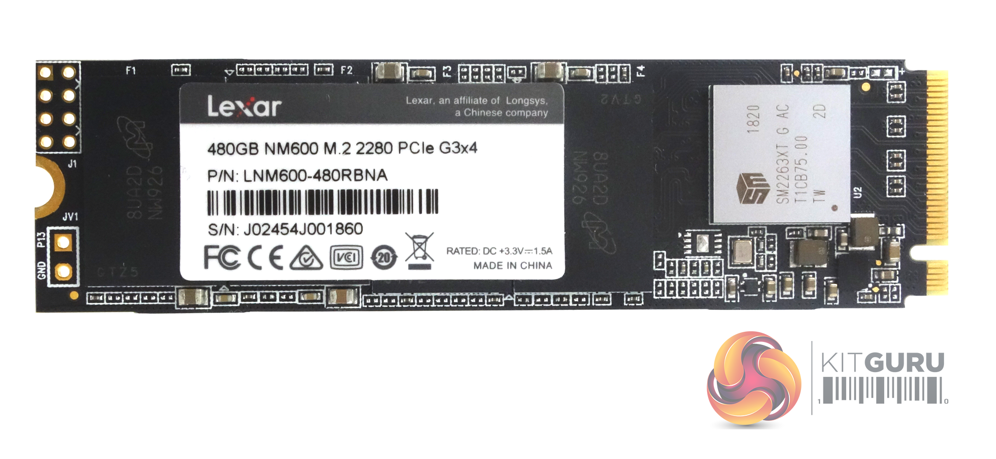 The NM600 is a single sided design with all the components one side of the PCB. This layout is made easier because it's a DRAM-less design, so that's one less chip to find space for. At one end of the PCB, sitting on its own is the Silicon Motion SM2263XT controller while under the product label there are four packages of Micron 64-layer 3D TLC NAND.