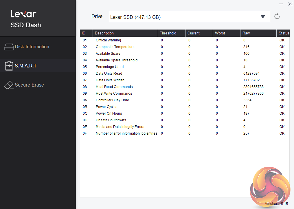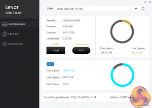 Lexar's SSD utility goes under the name of SSD Dash. It's not as fully featured as some of its competitor's from, for example Samsung or WD, but it does offer all the basic information you might need to keep an eye on your drive in an easy to understand way. It also supports Secure Erase.